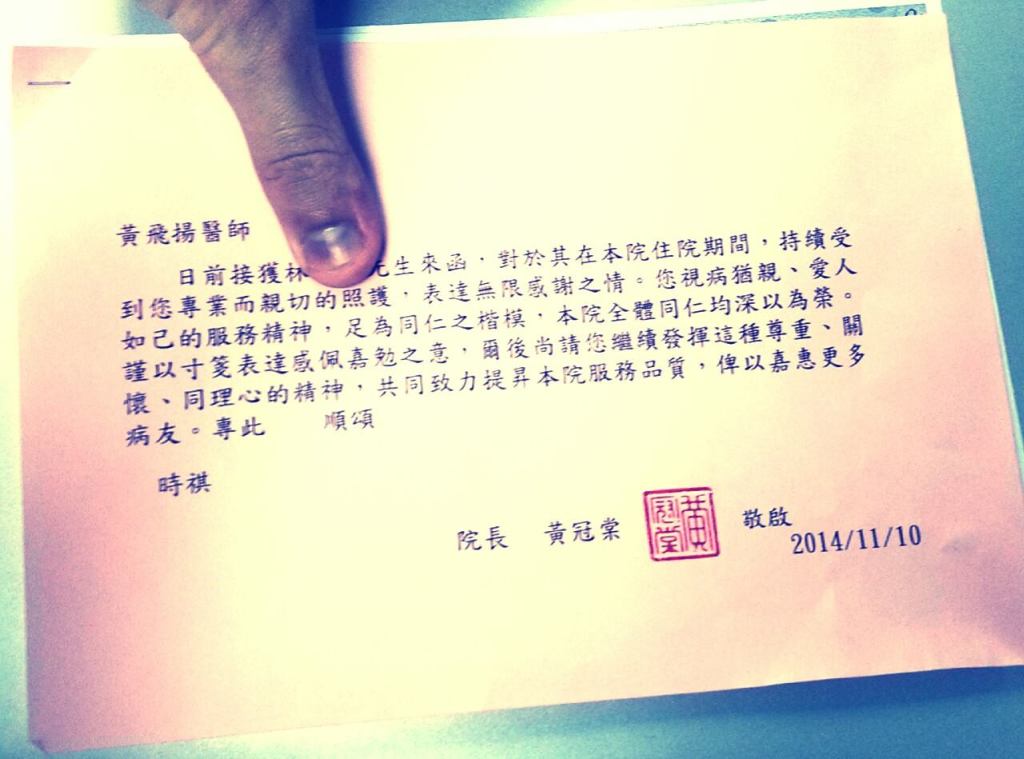看到過去看到許多自己喜歡的歌手,有勇氣在自己職業的巔峰選擇離開舞台,就想到醫師和表演者的共通點——其實我們都是在觀眾需要我們的時候,才有存在的意義。這次的健保糾紛並沒有讓我對臺灣的醫療環境徹底失望,反而讓我更加清楚,自己想要更積極去尋找真正需要自己專長的人和環境,面對不需要自己的群眾和惡劣的制度更加釋然,擁抱自己進退得宜的彈性與定位。